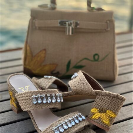 Hand-painted evil eye clutch with black handle & tassels